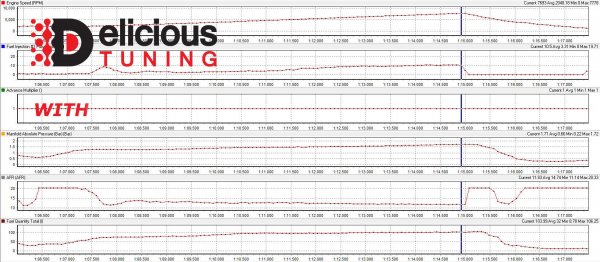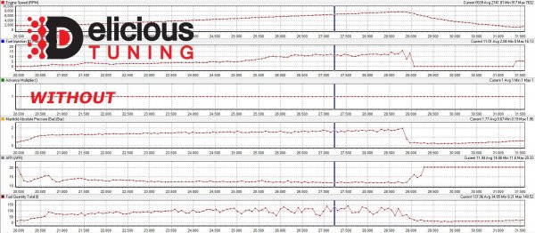 Delicious Tuning - MAP Sensor Smoothie smooths out the power delivery on your Edelbrock E-force supercharger, primarily in the mid RPM range. When the MAP sensor is reading pressure values in mid to higher RPM range, the valve opening/closing in combination with the long runners on the Edelbrock supercharger cause a pulsation. This in turn can cause the AFR's to rapidly adjust and correct to try and target the correct AFR's. This is where the smoothie comes in, so that it will limit the amount of pulsations, and smooth out the power band in this range.